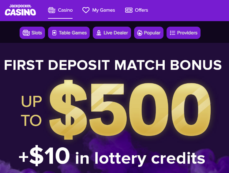 - Jackpocket Casino – Get Match Deposit Bonus up to $500